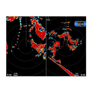 The GMR 24 xHD has a narrower beam width that paints a very precise, high-resolution image. New Dynamic Auto Gain and Dynamic Sea Filter continually adjust to your surroundings, providing optimal performance in varying conditions. Choose from multiple levels of aggressiveness or use manual gain adjustment. Dual range operation allows fully independent split-screen display of far and close radar views in full 8-bit color (select chartplotters); range of 48 nm. Optional “No Transmit Zone” can protect areas behind the radar from being radiated while providing full forward-looking radar capability. This makes installation more flexible by providing more suitable installation options on your boat.