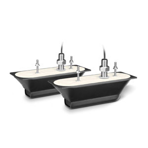 The CHIRP ClearVü/ SideVü elements have a power rating of 500 W per element (1,500 W total) and operating frequencies of 260/455 kHz. The traditional CHIRP sonar has a power rating of 600 W and operating frequencies of mid-band CHIRP 80-160 kHz. It includes a built-in fast-response temperature sensor. For hull deadrises less than 25 degrees.