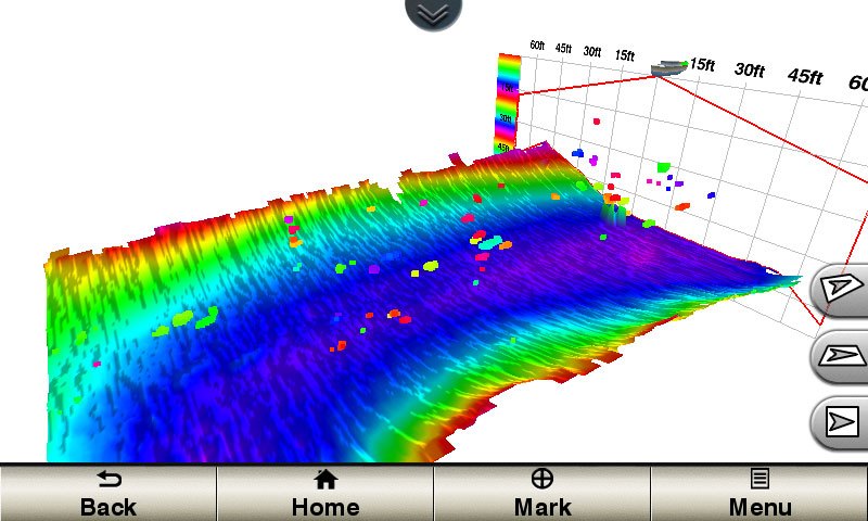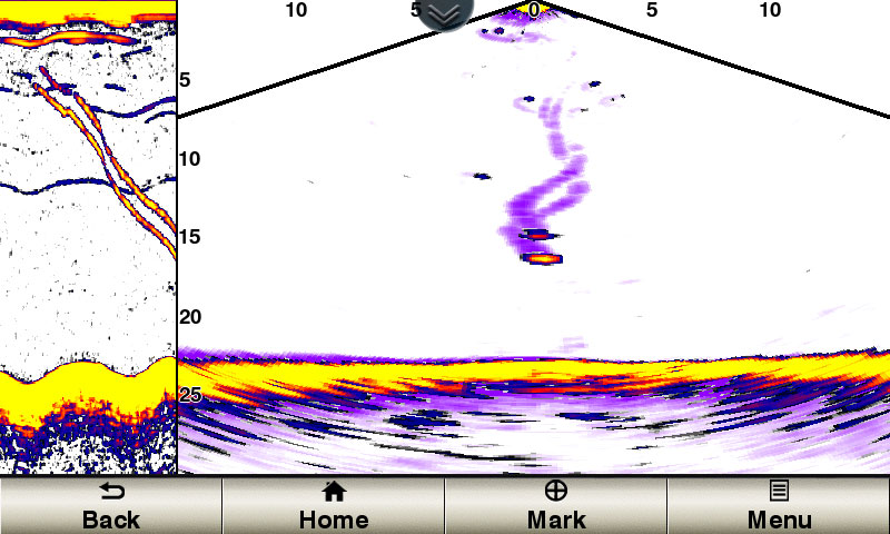Used for finding fish while your boat is moving. This shows the entire water column you have passed over in 3-D, from the bottom of the surface and all of the fish in between.